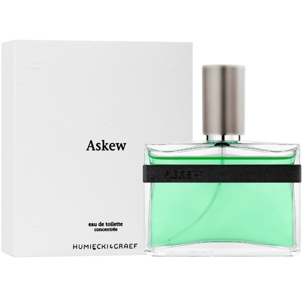 Мужской аромат Humiecki & Graef Askew, выпущенный в 2009 году, относится к кожаным. Он ассоциируется с неистовством. Аромат разрушит все понятия классического мужского аромата и представляет собой источник энергии, огня и мужества. Кардамон, грейпфрут, мягкая кожа и ветивер – основные ингредиенты парфюмерной композиции. Парфюм Humiecki & Graef Askew (Хумиесцки и Граф. Искоса) можно сравнить с таким же мужественным и энергичным ароматом Hugo Boss Selection. Бренд Humiecki & Graef знаменит нишевой парфюмерией.